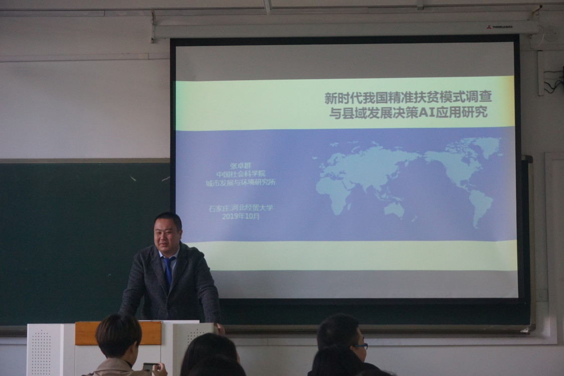 邀请中国社会科学院城市发展与环境研究所研究员张卓群博士于三教B212教室进行了题为“新时代我国精准扶贫模式调查与县城发展决策AI应用研究”的讲座。副院长仇晓洁教授到场,Jcomic