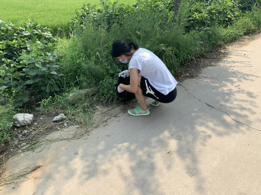 8月12日上午,我向村长询问了村里的卫生情况,了解到村里垃圾桶的分布情况和清洁工作的进行情况,并认真做好了记录。询问完后,我向村长介绍了此次社会实践的目的,并得到了村长的支持,之后通过广播的方式进行了简单的环保知识的宣传。下午,我召集了一些村里的同龄人,带上了垃圾袋和一些清洁工具到南边庄子村村口的公路,进行打扫以及清洁。清扫过后,认真清理残留下来的垃圾。经过一天的清洁工作,村口公路焕然一新。