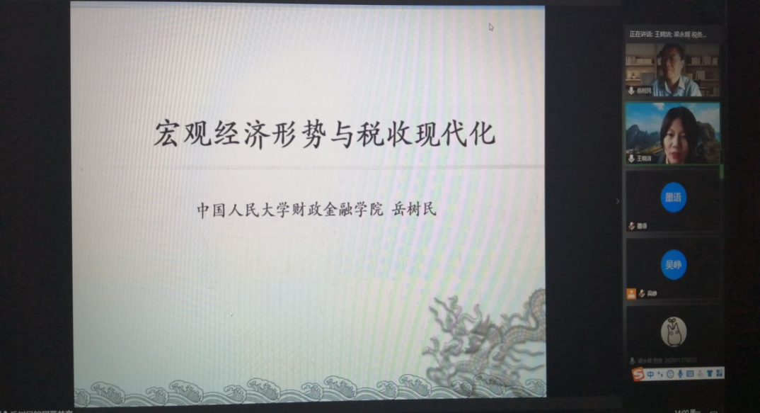 岳树民教授首先围绕“当前宏观经济形势”对当前宏观经济形势制度进行了详细解读。紧接着,提出“当前经济形势对税收的要求”,并就当前建立现代税收制度的基本要求与基本取向进行深度剖析,指出税收在市场经济中应该“更好发挥政府作用”的功能和机制。最后,岳教授从“深化税制改革、建设现代化税收制度”进行了详细的分析并提出改进的政策建议。