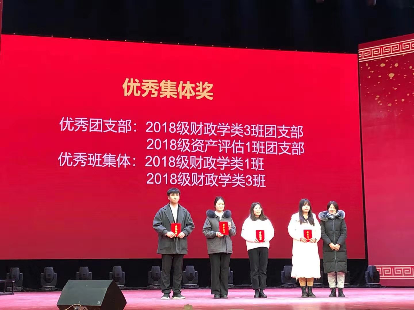 晚会期间,刘静旺、王晓洁、郑颖向学生颁发了优秀集体奖和优秀学子奖,对在班团建设、专业学习、学科竞赛、创新创业等领域取得优异成绩的8个优秀集体和13名优秀学子代表进行了表彰。