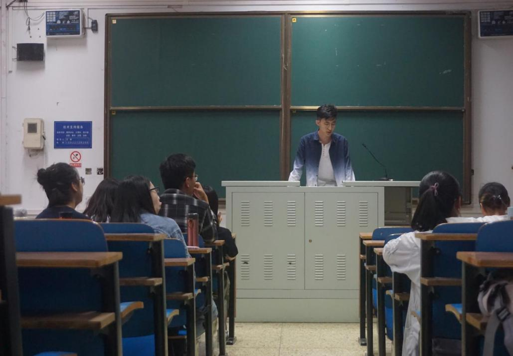 于C112开展考研就业分享交流会。学院书记郝江华,正处级辅导员郑颖,学生工作办公室主任黄培,团委书记安宁出席交流会。本次交流特邀学院副院长仇晓洁进行研究生报考指导,优秀毕业生代表白宇馨、武亭婷、贾明瑞、刘若曦、王佩喆以及优秀退伍士兵大学生韩镒阳做主要经验分享,18级全体学生参加,500余人观微博看了线上直播。