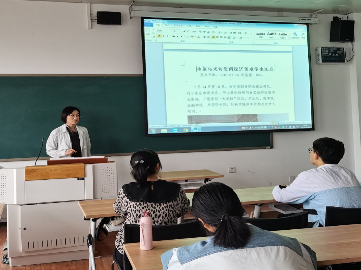 近期拍摄的新闻照片为例,从新闻写作要素、新闻采写注意事项、摄影摄像注意事项、微信排版注意事项四个方面,生动形象地向同学们讲解了采写、撰稿、摄影与排版中的规范与技巧。她认为,新闻采写应注重“5W1H”(Who、What、When、Where、Why、How)新闻要素的准确性,要用严谨规范的新闻用语,摄影摄像要注意选取合适的角度,排版要简洁大方。