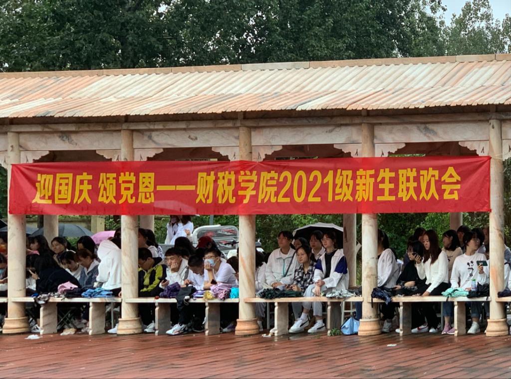 在学校后花园举办了主题为“迎国庆,颂党恩”的新生联欢会。本次活动由学院团委策划,学生会组织,2021级全体学生参加。