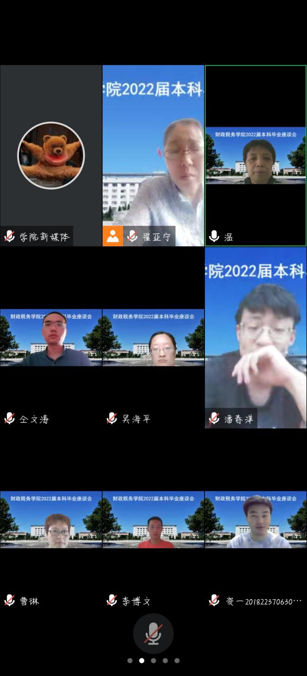 在腾讯会议召开了2022届本科毕业座谈会。本次座谈会由副院长温立行主持,各系系主任、2018级全体辅导员及2022届共15位毕业生代表参加了此次会议。