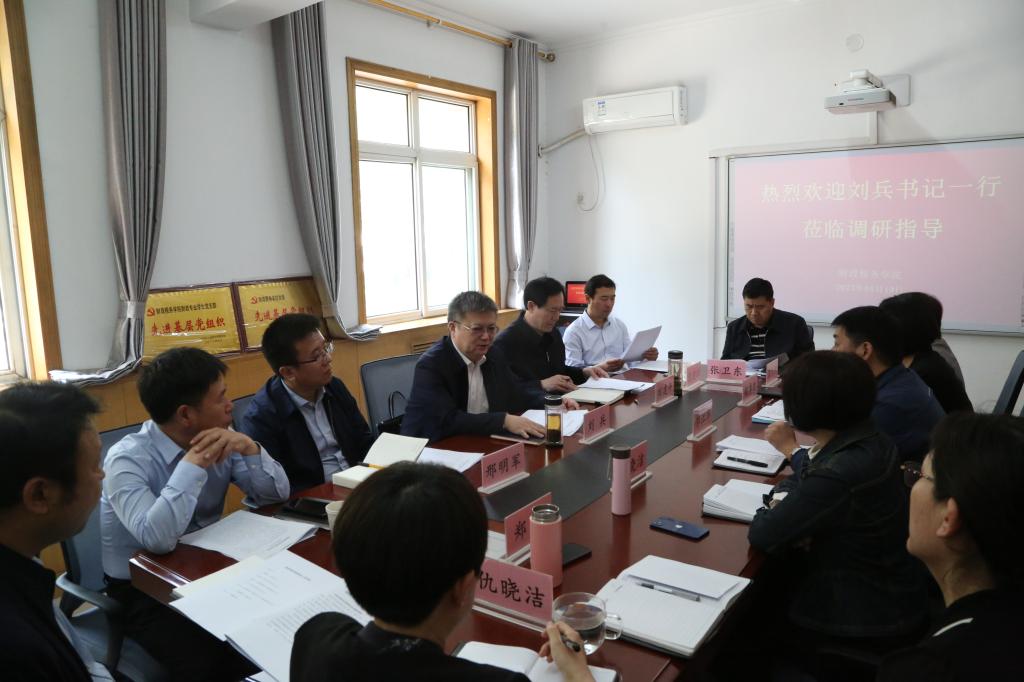 刘兵认真听取汇报后,对学院工作给予肯定,并就学院加强师资队伍建设、优化学院党支部设置、“一流党建”品牌凝练与提升等方面给予指导,并就学院本科生招生、学生外出实习实践意外险投保等事宜现场办公解决问题。