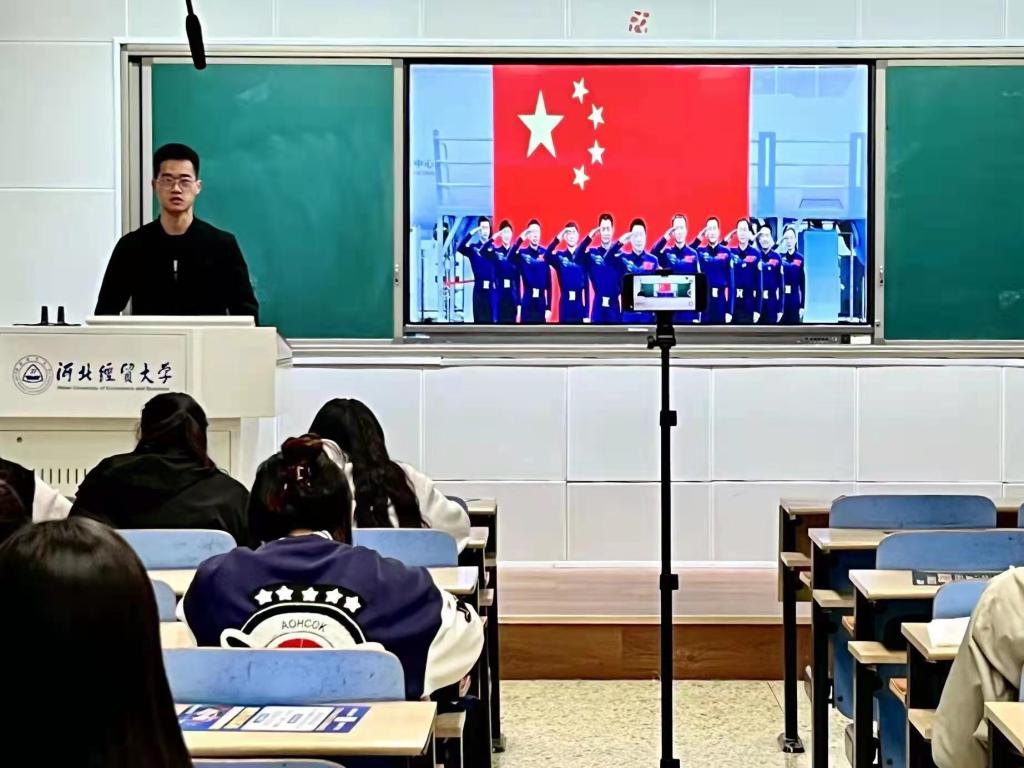 孙超介绍了中国人民解放军航天员大队的事迹,大队组建23年来,全体航天员始终牢记党和人民的期望重托,胸怀中国梦、强军梦,矢志献身航天事业,精研苦训掌握飞天技能,锐意进取实现创新跨越。飞天就是使命,太空就是战场,困难再大、危险再大,都动摇不了航天员征战太空的决心。孙超说,两年军旅生涯虽短,但这段经历带给人生的启迪很深,他呼吁同学们敢于追梦,无悔青春。