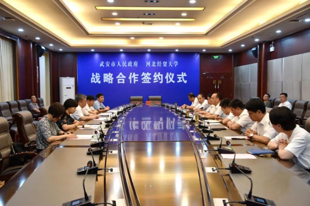 与武安市人民政府举行战略合作协议签约仪式。校党委书记刘兵出席并讲话,武安市委副书记、市长董志毅主持签约仪式。校党委常委、副校长杨金田,武安市委常委、常务副市长任鸿雁,市政协副主席、财政局局长李海顺出席。