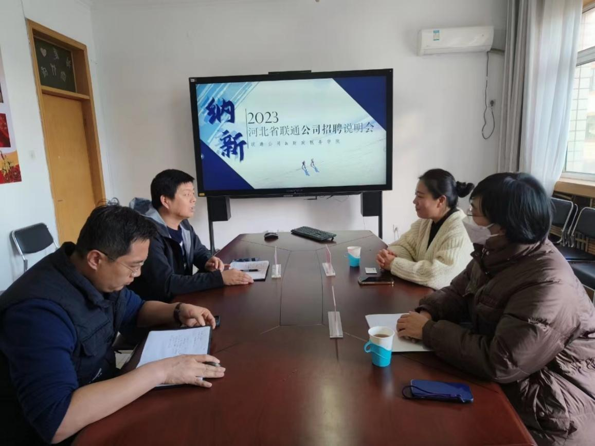 为精准对接企业用人需求,促进毕业生高质量就业,11月23日,Jcomic 与河北省联通公司开展招聘对接会,党委书记郝江华、辅导员翟勤及河北省联通公司相关负责人参会。