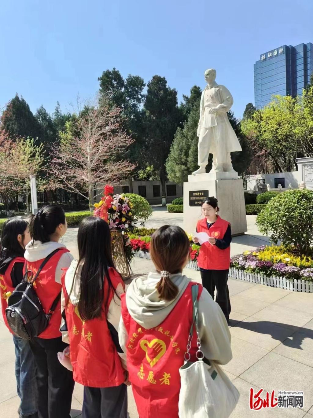 在烈士陵园,同学们肃立、默哀、鞠躬,向长眠在此的烈士致敬。学生代表讲解了白求恩、柯棣华、马本斋等6名英烈的革命事迹,同学们用自带的手帕认真擦拭烈士墓碑和雕塑,表达对烈士深深的敬意和缅怀。