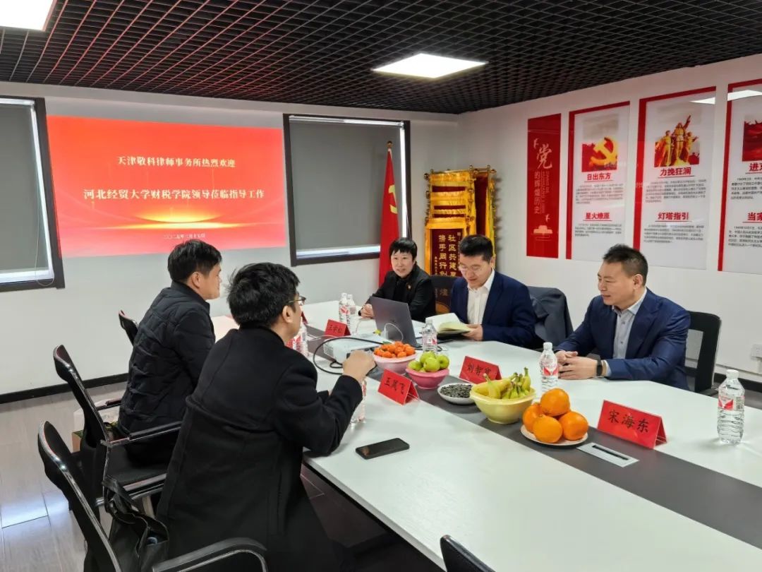 王凤飞对长期以来支持学校发展的天津各校友企业表示衷心的感谢,对各位助力校企合作的校友表示诚挚的敬意。他介绍了学校和财税学院的发展情况,希望校企双方在人才培养、就业创业方面加强合作,进一步深化产教融合,服务人才供需对接,共同促进校企协同育人。刘智宽首先对王凤飞一行表示欢迎,他介绍了学校服务区域发展天津工作站在服务校友、服务学校、服务社会等方面开展的工作和取得的成效。在座校友介绍了各自公司(律所)发展历程、业务范围和运营情况,与会人员分析了财税学生的成长路径与能力需求,并表示要继续深入推进校企合作,实现合作共赢。