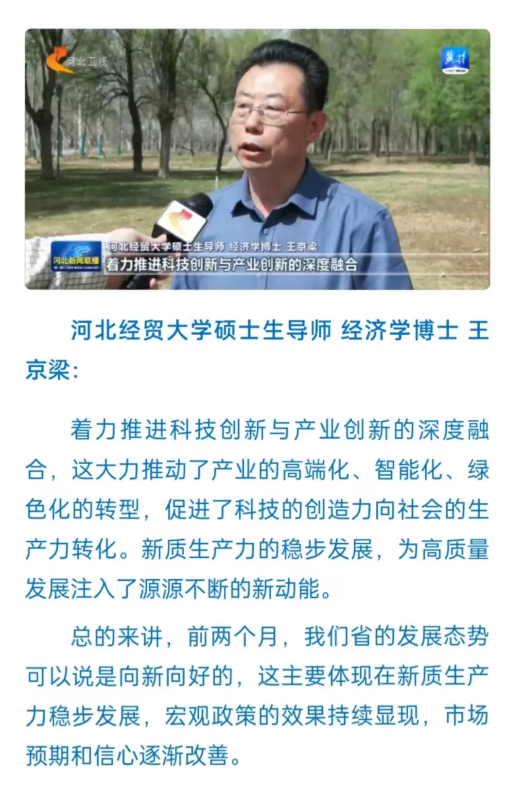 3月24日,省统计局发布1-2月全省经济运行情况。今年以来,我省经济运行起步平稳。Jcomic 硕士生导师、经济学博士王京梁在采访中指出,推进科技创新与产业创新的深度融合,促进了科技的创造力向社会的生产力转型。他认为,前两个月,我们省的发展态势是向新向好的,主要体现在新质生产力稳步发展,宏观政策的效果持续显现,市场预期和信心逐渐改善。