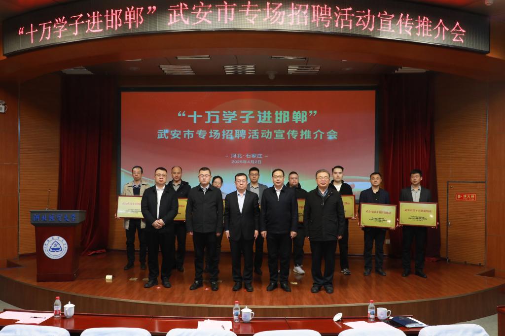活动开展期间,专门召开了宣传推介会。会上,高校代表、就业指导教师和部分学生代表集中观看了邯郸市引才政策宣传片和武安宣传片;河北经贸大学党委常委、副校长耿辉建,河北开放大学党委副书记、校长田学斌先后致辞,河北师范大学汇华学院院长徐国强等多所高校领导出席;金鼎钢铁企业代表、武安籍学生代表分别作了发言;韩辉向8所高校分别颁发了“武安市招才引智联络站”牌匾。
