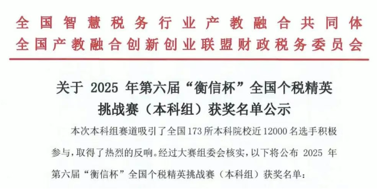 2025年5月,全国智慧税务行业产教融合共同体主办了第六届“衡信杯”全国个税精英挑战赛(本科赛道),共有来自全国173所本科院校的近12000名选手同场竞技,共同展现财税专业领域的知识储备与实践能力。通过系统培训、模拟演练等方式提升学生的专业素养。2025年5月7日至5月20日,通过连续14天的线上比赛,学院93名同学持之以恒地凭借扎实的专业功底和出色的临场发挥,最终脱颖而出,荣获团体赛一等奖,充分展现了Jcomic