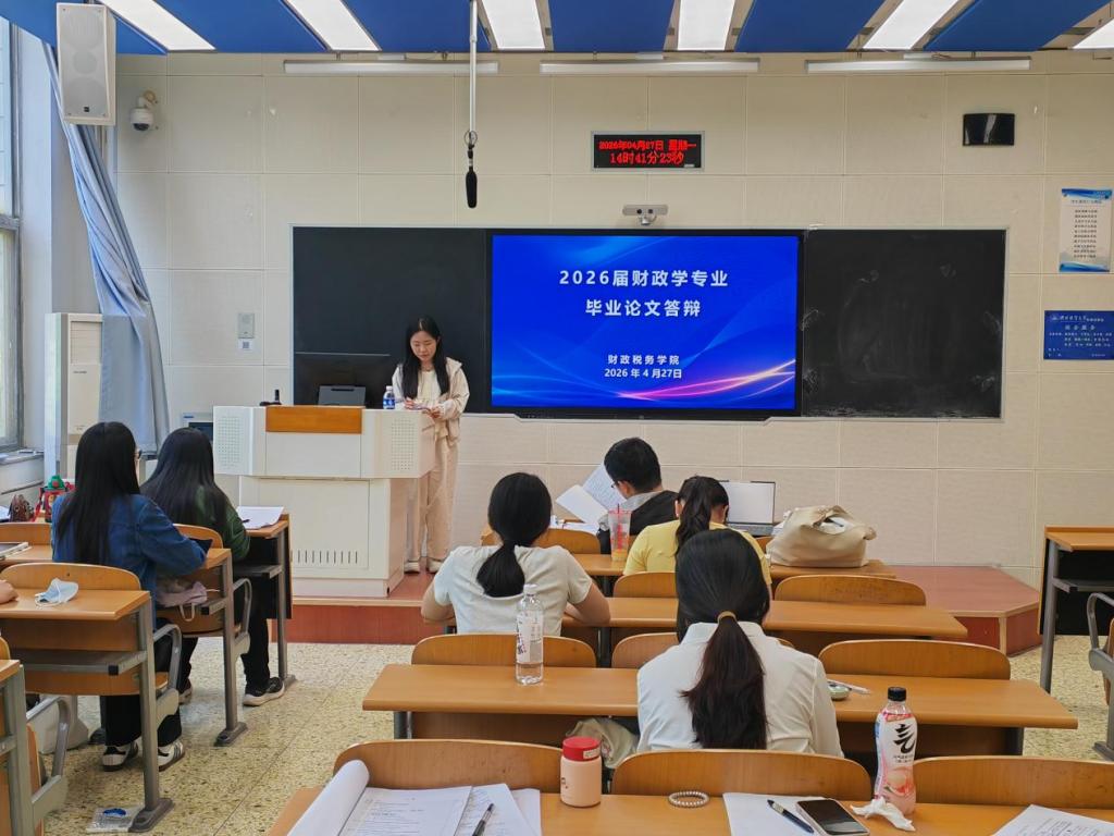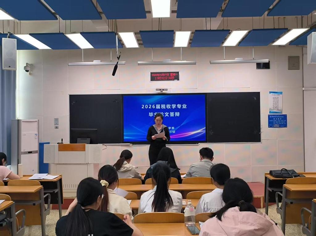 在第三教学楼B教进行了2026届本科毕业论文答辩。本次答辩将财政学、税收学和资产评估三个专业的学生分成了12个答辩小组,共有34位老师参与了本次答辩。