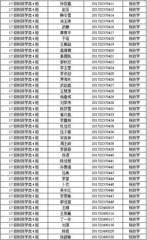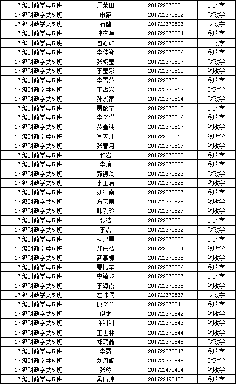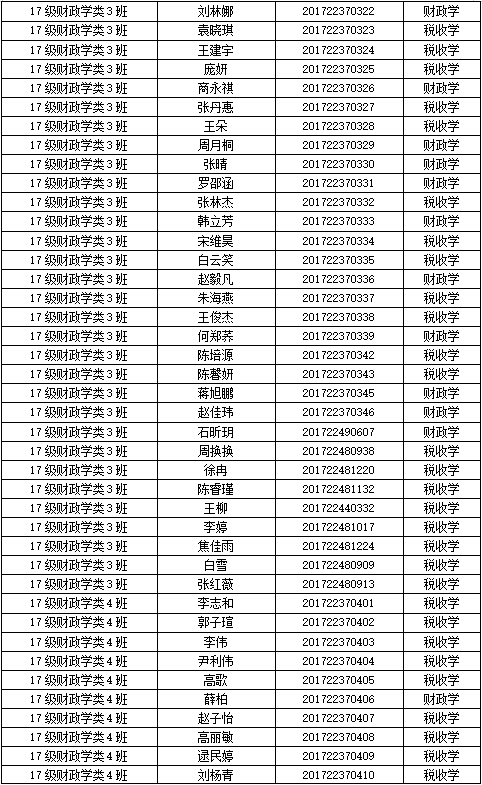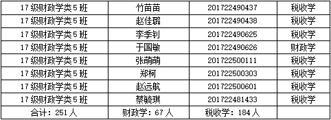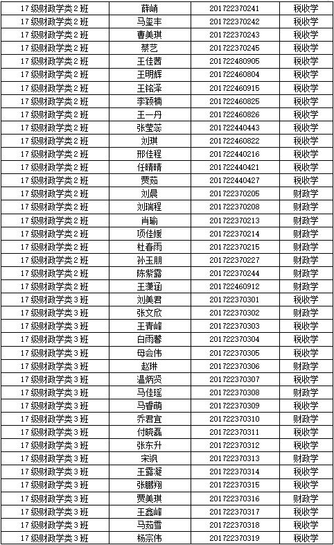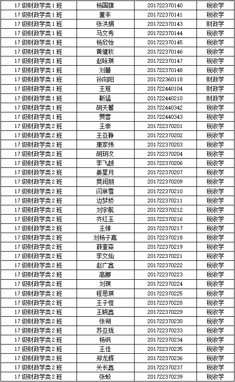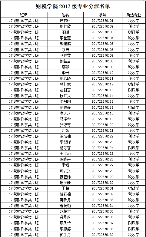 财税学院2017级专业分流名单