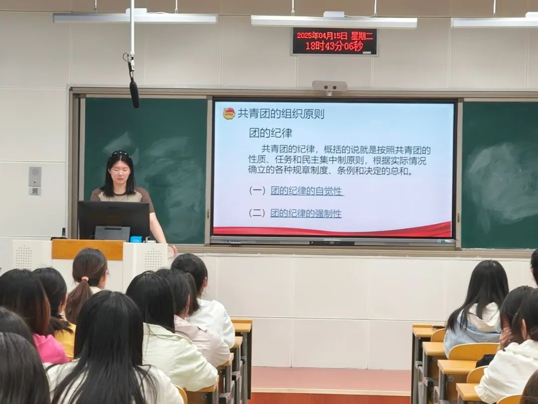 杨晶然围绕共青团的简介,团旗、团徽、团歌与团章概述,团员的权利与义务以及入团的意义四大板块展开详细讲解。学生们全面了解了共青团作为党的得力助手与后备军的重要地位和作用,深刻领悟了入团的重要价值,进一步坚定理想信念,增强对中国特色社会主义的信心。