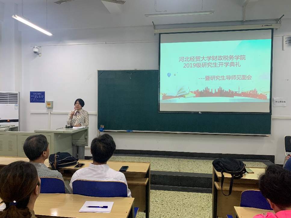 2019级研究生开学典礼暨导师见面会在北三教A402举行。参与此次会议的有河北省资产评估协会秘书长于永春老师,张晋武教授,党委书记刘静旺、院长王晓洁、党委副书记刘贵来、副院长温立洲、副院长仇晓洁以及学院其他领导、老师。仇晓洁老师主持了此次会议。