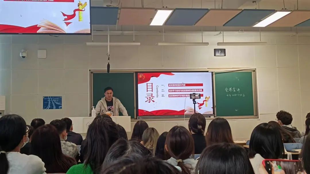 “微党课·我来讲”之“我为中国精神代言”命题党课第四讲—“延安精神”在北三教A204开讲。此次党课由研究生党支部刘振主讲,专职组织员黄培、研究生党支部党员和入党积极分子70人参与党课活动。