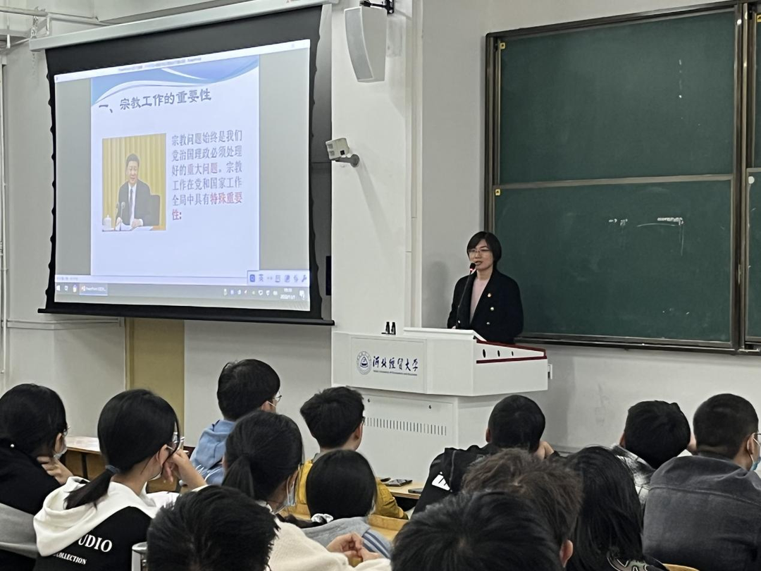 在第五教学楼第二教室开展宗教知识专题讲座,学院党委副书记胡卓理主讲,160余名2022级同学参与。