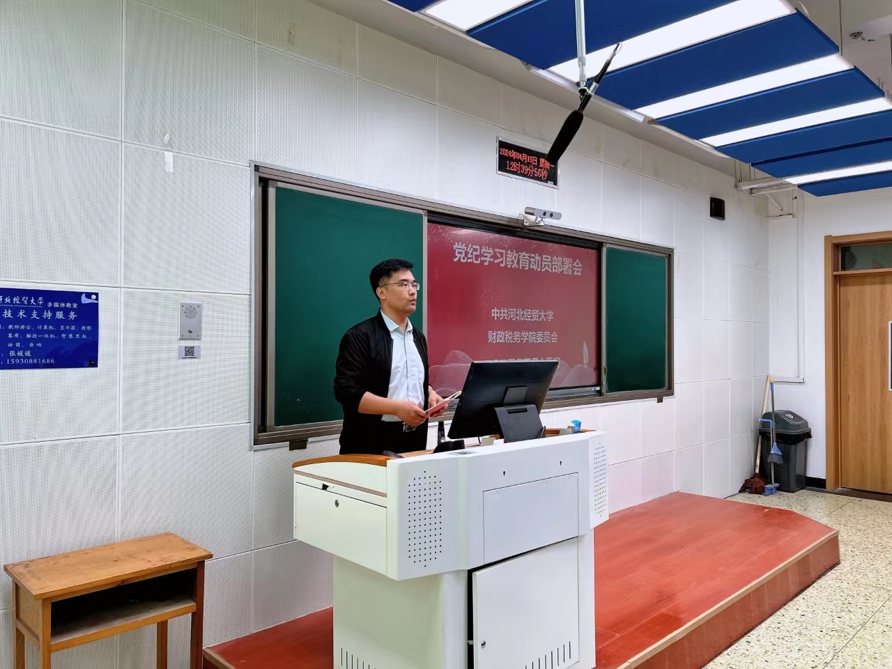 于2024年4月15日召开党纪学习教育动员部署会,院党委书记王凤飞主持会议并作启动部署,学院领导班子和全体教师、部分学生党员参会。