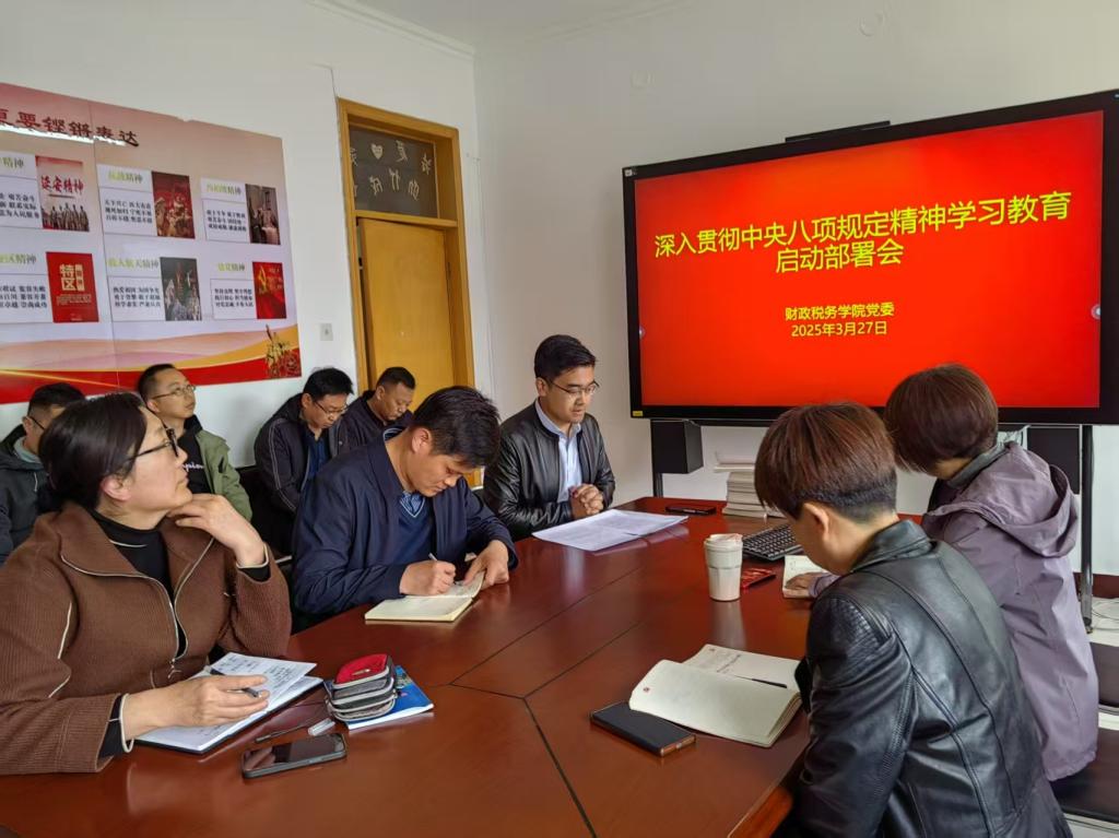 党委组织全体教师党员、部分学生党员召开深入贯彻中央八项规定精神学习教育启动部署会,党委书记王凤飞主持并讲授专题党课。