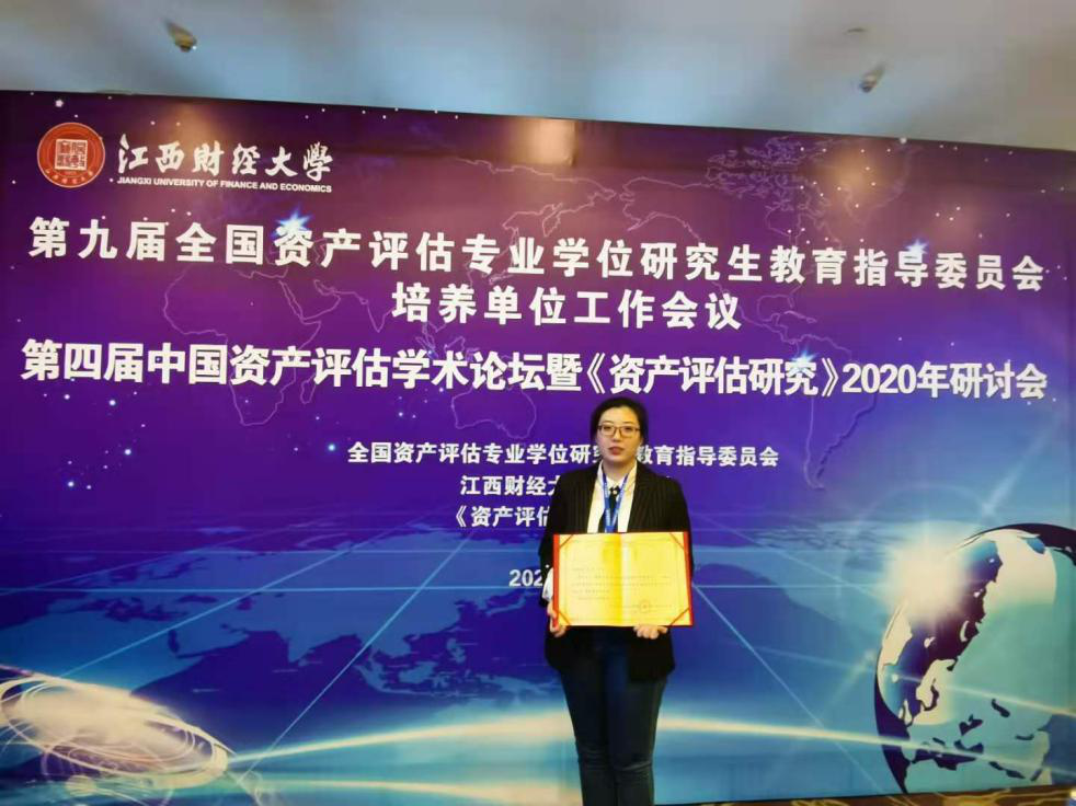 副院长仇晓洁教授指导,王月同学撰写的《股权价值评估中控制权溢价率预测研究——以信息技术行业为例》获第四届中国资产评估学术论坛最佳论文。