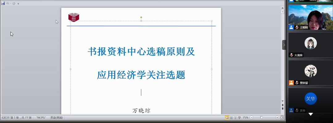 邀请中国人民大学万晓琼主编作学术报告