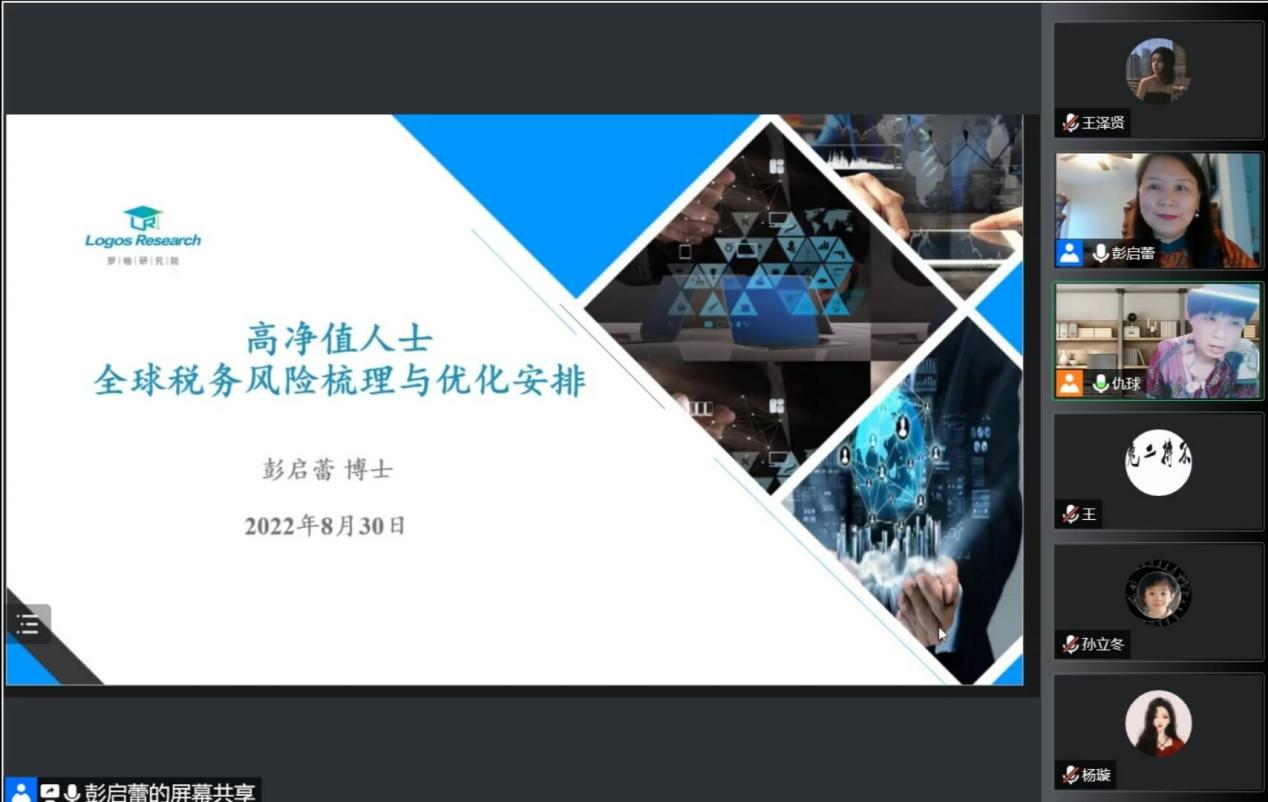 彭启蕾主要围绕“高净值人士已成为税收监管重点”、“国内外的税收形势变化”、“高净值人士常见的税收风险”及“优化建议”四个方面进行系统讲述。