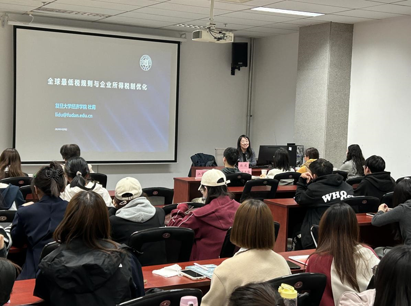 4月9日晚,复旦大学经济学院教授、博士生导师杜莉在校图书馆文献检索室做“全球最低税规则和企业所得税制优化”专题讲座。副院长温立洲、学院部分教师及税务专业学生共同参与了本次学术交流活动。