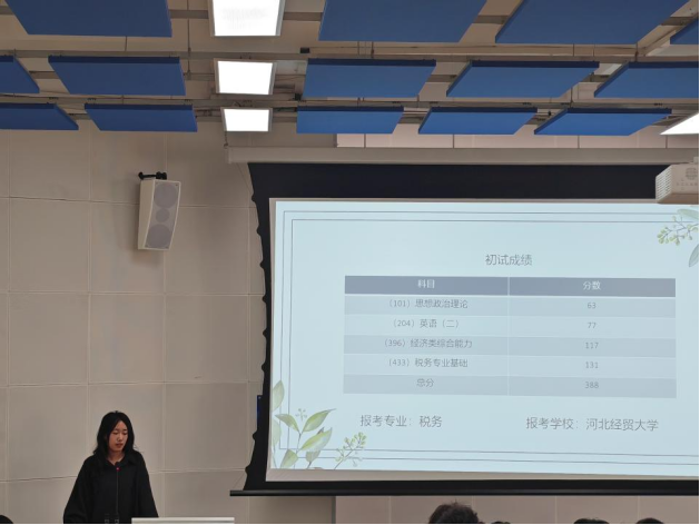 胡双媛考取了河北经贸大学税务专硕,她认为考研中应该制定每日计划、养成良好作息习惯、勤动笔、及时总结,每天晚上睡觉前对今日所学知识的回忆也使她更好地掌握了知识点。