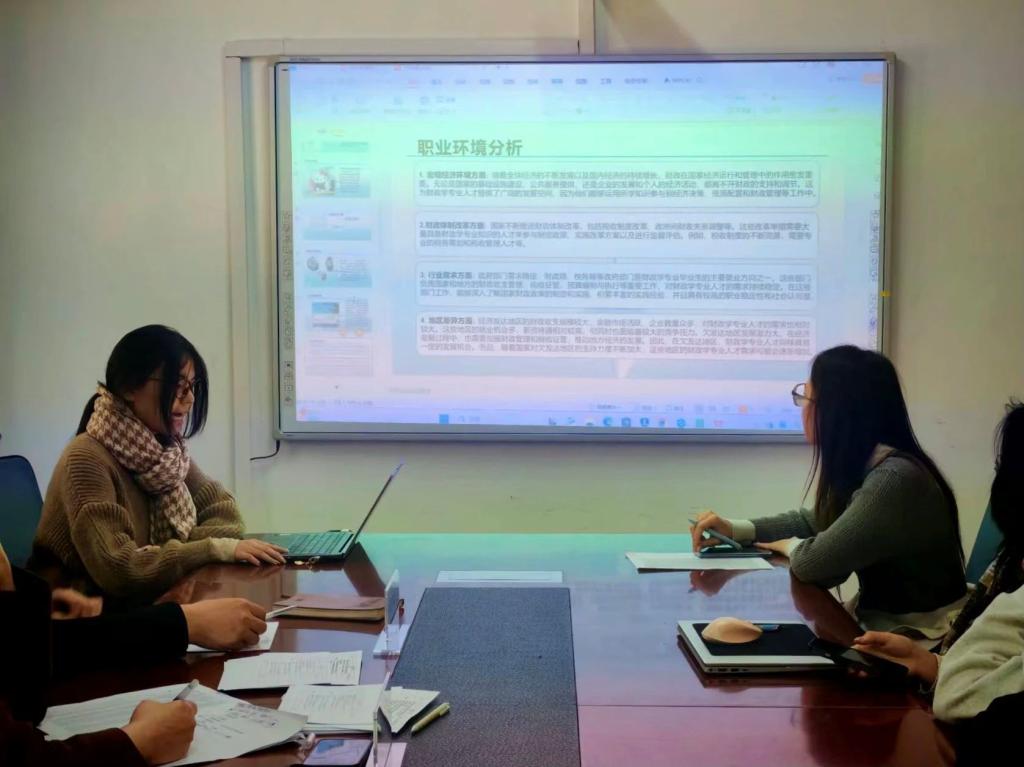 比赛过程中,各位参赛学生向两位评委老师展示自己的PPT作品,有条不紊地讲述自己的职业规划。从自我分析到职业目标,再从执行计划到评估调整,每个选手从容大方、图文并茂地展示每一个环节,充分展现了他们对职业规划的深刻理解。台下评委老师认真倾听并提出看法和改进意见。整个比赛过程井然有序,比赛气氛紧张激烈。