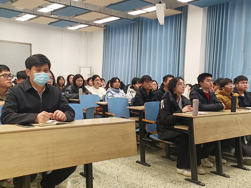 专职教师、2022级资产评估专业兼职班主任吴峥主讲,党委副书记陈运涛出席,2022级资产评估专业全体学生参加。