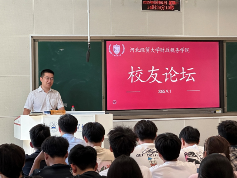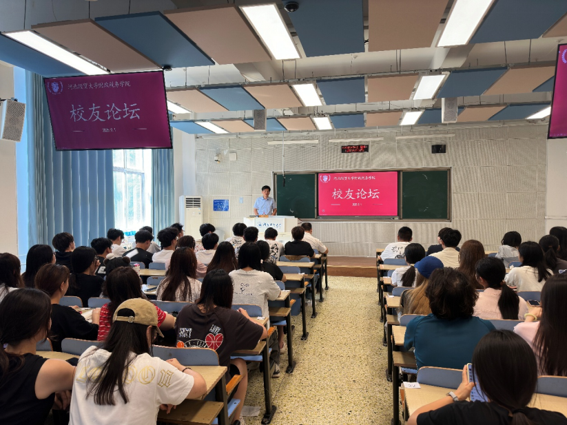 邀请2001级财政学校友、天津敬科律师事务所主任、天津至睿会计师事务所高级合伙人、天津正盛资产评估公司高级合伙人王学松校友举办校友论坛。2024级本科生80余人参加。活动由学院党委副书记陈运涛主持。