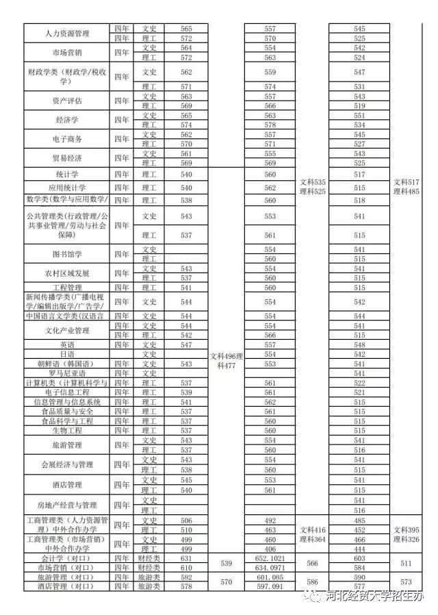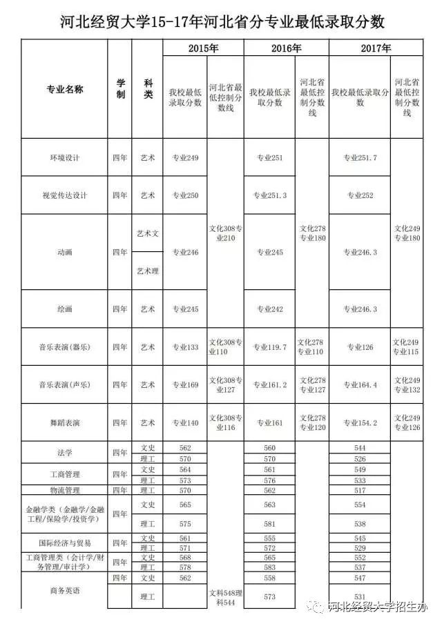 河北经贸大学2015-2017河北省分专业最低录取分数线